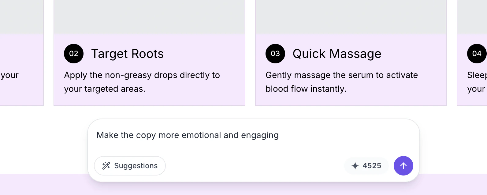 - Type a prompt in the chatbox (e.g., “Make it shorter”, “More emotional”, “Add urgency”)